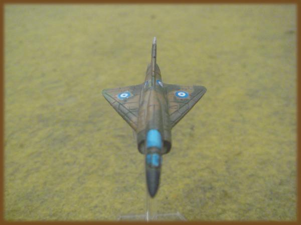 First up was the Argentinian jets. I have already sprayed the brown, and then added the blue tac. I then sprayed the mirages bright green. Added some more blue tac (see the l9ighter color snaking tac by tail and wing edges) to cover the bright green, then sprayed the dark green.